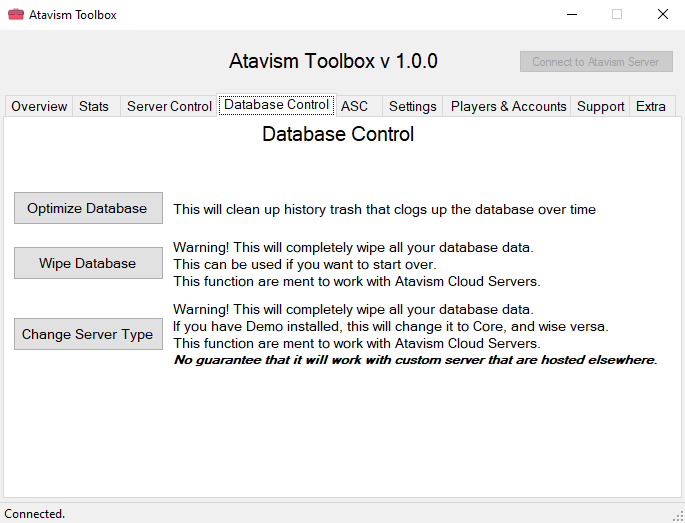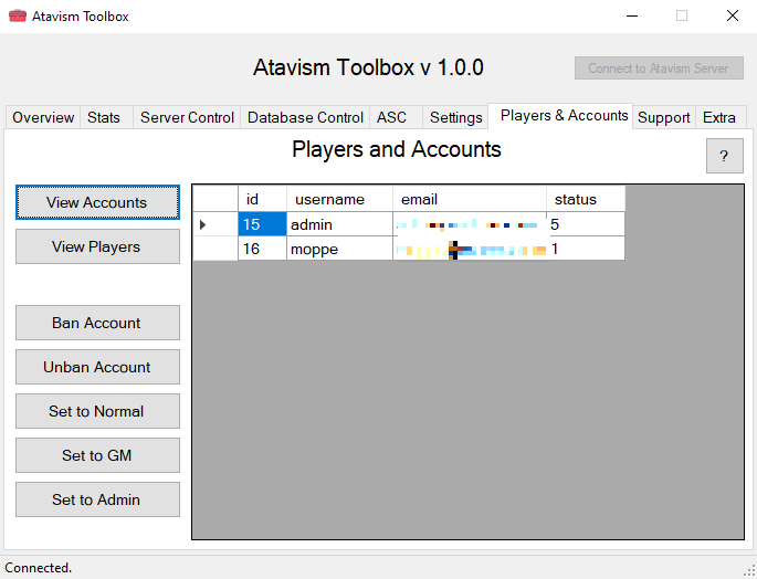 When playing around with the Atavism framework, it became apparent that a better server tool was needed at the time. Thus Atavism Toolbox was created!